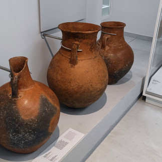 למוזיאון שני אגפים. הראשון מציג את התקופה הפרהיסטורית והפרוטוהיסטורית (כלומר, תקופה בה לחברה עצמה עדיין לא היתה יכולת כתיבה, אך חברות אחרות שכבר ידעו לכתוב, התייחסו אליהן בכתב). התצוגה עוברת בסדר כרונולוגי ומציגה ממצאים מהתקופה הנאוליתית (לפני השימוש בקדרות ואחרי, ותחילת תקופת החקלאות), הכלקוליתית (שימוש בנחושת) ותקופת הברונזה - כלומר ממצאים משנת 9,000 לפני הספירה.
