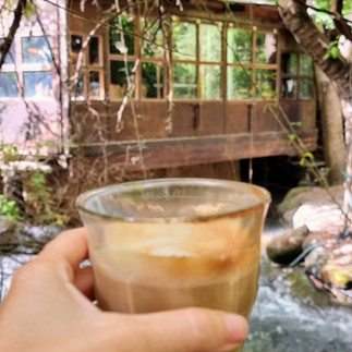 בית הקפה במיקומו החדש יושב על נחל דן. אפשר לשתות קפה, לאכול מאפים משובחים ולהאזין לפכפוך המים.